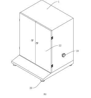 參照圖1,包括殼體1、工作臺2、盛液盒3和標準板4,殼體1內(nèi)設置有工作腔5,殼體1底部設置有多個支撐腳20,在本申請實施例中,支撐腳20設置為四個,四個支撐腳20設置于殼體1的四角位置;殼體1上鉸接有兩轉(zhuǎn)動門22;工作臺2設置于工作腔5內(nèi),工作臺2上開設有與盛液盒3適配的放置槽21,盛液盒3可放置于放置槽21中,標準板4設置于盛液盒3上方,標準板4通過升降結(jié)構(gòu)可升降連接于殼體1上,工作臺2上固定連接有水平儀6,在本申請實施例中水平儀6選用氣泡式水平儀,也可選擇其他體積較小的水平儀;工作臺2和殼體1之間設置有用于調(diào)平工作臺2的調(diào)平結(jié)構(gòu)。