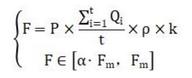其中,F(xiàn)為高壓水流沖洗設(shè)備實(shí)際水流沖洗的沖擊力,Qi為高壓水流沖洗設(shè)備第i秒水流的流量,t為高壓水流沖洗設(shè)備預(yù)設(shè)的水流沖洗的時(shí)長,ρ為水的密度,k為預(yù)設(shè)定的閾值參數(shù),P為輸出功率可調(diào)的高壓水流沖洗設(shè)備的實(shí)際輸出功率,α為預(yù)設(shè)的抗壓閾值參數(shù)且其數(shù)值小于1,F(xiàn)m為新能源電池沖壓配件最大抗沖擊力值。
