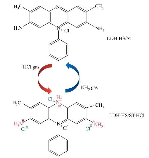 圖1 HCl和NH3氣體對LDH-HS/ST LB復合膜的化學反應機理