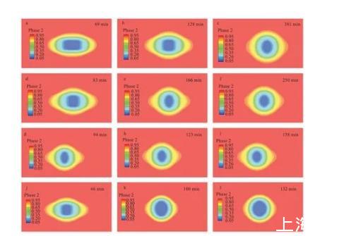 由計(jì)算流體力學(xué)后處理軟件所得到的液滴形態(tài)變化圖,可以看到液滴由最初的圓柱形變化成橢球形,再由橢球形變化成球形。與實(shí)驗(yàn)所得到的各時(shí)刻形態(tài)圖液滴變化趨勢(shì)相同,時(shí)間上略有誤差,可能是由于基質(zhì)導(dǎo)熱速率、加熱臺(tái)功率,以及室溫的影響。