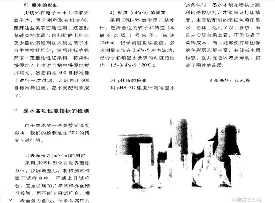 經(jīng)過多次測(cè)量,其表面張力儀均在35mN/m左右波動(dòng),已介于彩噴墨水要求的表面張力范圍30-50mN/m(20攝氏度)。