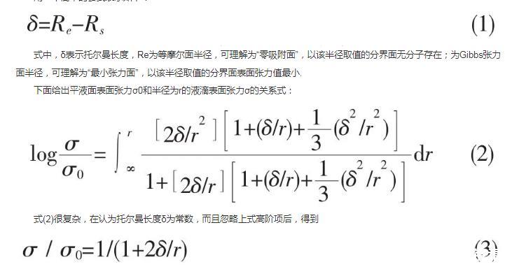 1949年,Tolman在研究表面張力與液滴大小關(guān)系時(shí)引入了后來(lái)被稱(chēng)為托爾曼長(zhǎng)度的物理量,使問(wèn)題進(jìn)入定量研究階段。