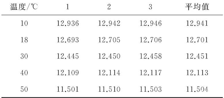 將不等徑U型管內(nèi)徑以及液位差的測量數(shù)據(jù)代入式(8)中,計(jì)算得到對應(yīng)溫度下的表面張力系數(shù)的測量值。查閱已有文獻(xiàn),可以得到不同溫度下純凈水表面張力系數(shù)的公認(rèn)值以及數(shù)據(jù)擬合出的公式α=75.45067-0.13326t-5.26468×10-4t2.實(shí)驗(yàn)測量值與公認(rèn)值對比列于表3.