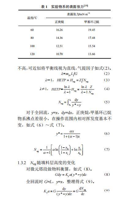 低表面張力物系在規(guī)整填料塔中的流體力學(xué)性能和傳質(zhì)性能(一)
