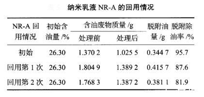 納米乳液NR-A的回用情況