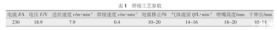 采用CMT一元化焊接工藝,通過正交試驗(yàn)確定主要影響因素,焊接規(guī)范參數(shù)如表1所示。