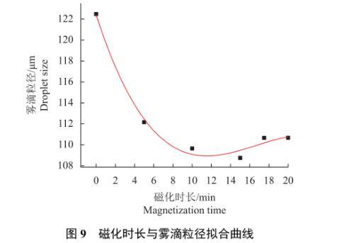 圖9磁化時長與霧滴粒徑擬合曲線