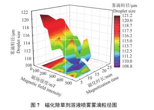磁場強度和磁化時長對除草劑溶液表面張力、噴霧霧滴粒徑的影響(三)