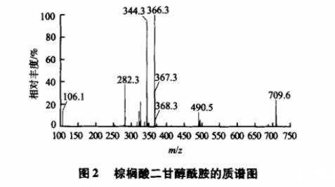圖2棕櫚酸二甘醇酰胺的質(zhì)譜圖