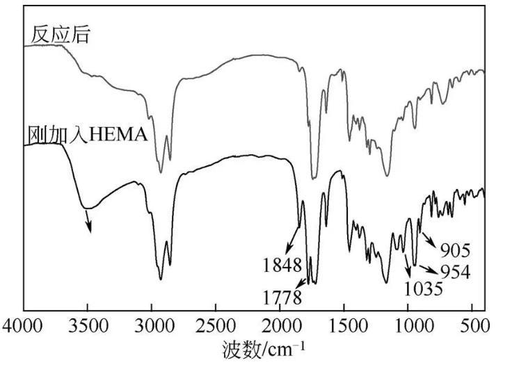 圖4 TM3與HEMA混合物反應(yīng)前后紅外對(duì)比圖