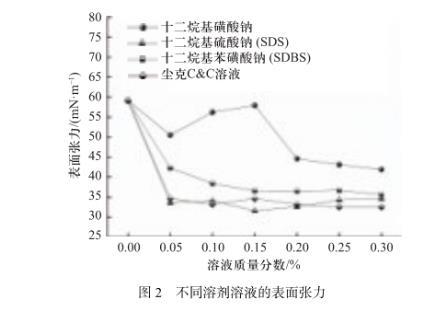 圖2不同溶劑溶液的表面張力