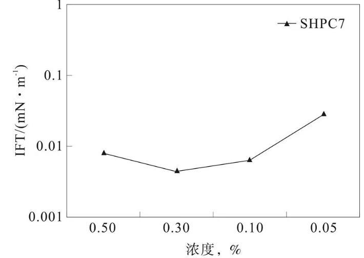 圖3不同SHPC7濃度下的界面張力變化