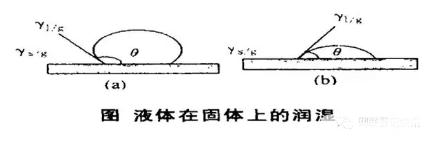 接觸角就是停留在固體表面的液滴,形成固、液、氣三個界面,做氣/液界面的切線,與經過液體內部和固體表面的夾角。