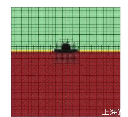 5)限制2)—4)條規(guī)則最小加密層數的加密區(qū)間為:Y向液滴中心上方2R至水面下方4R;x向對稱軸左右4R內的矩形內,以提高計算效率。