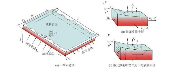 為增強數(shù)學模型的實用性,在構(gòu)建傾斜加熱壁面上液膜數(shù)值模擬之前,提出以下基本假設(shè)。