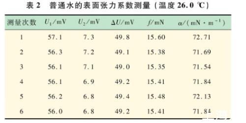 表2普通水的表面張力系數測量(溫度26.0℃)