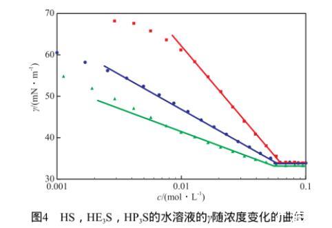 圖4 HS,HE3S,HP3S的水溶液的γ隨濃度變化的曲線