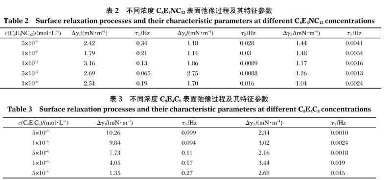 表3不同濃度C8E4C8表面弛豫過程及其特征參數