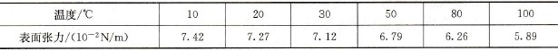 表1-2水在不同溫度下的表面張力