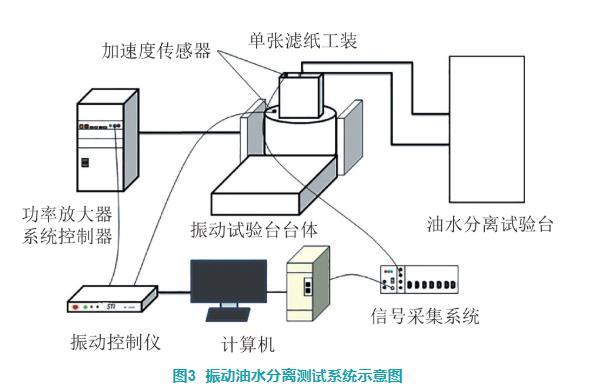 試驗的主要設備有電振動試驗臺、按照ISO 16332標準搭建的柴油–水分離試驗臺、加速度傳感器及信號采集系統(tǒng)、電子天平、庫倫法微量水測定儀、界面張力儀、黏度計等。