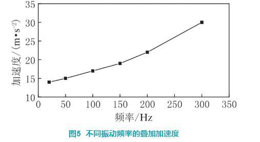 車輛在行駛中傳遞到油水分離器上的振動主要集中在10~340 Hz,沿X方向的主要振動頻率為20、45、100、200、300 Hz,沿Y方向的主要振動頻率為20、50、100、175、203、300 Hz,沿Z方向的主要振動頻率為20、100 Hz,加速度均大于8 m/s2,沿Y方向100 Hz的振動加速度最大約為39.2 m/s2。為了方便對試驗結果進行比較分析,最終選擇在頻率為20、50、100、150、200、300 Hz,加速度為39.2 m/s2的條件下進行試驗。