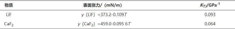 表1純組元LiF與CaF2的標準表面張力值