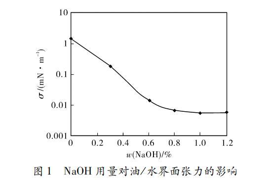 氫氧化鈉用量對(duì)重烷基苯磺酸鈉水溶液/油體系界面張力的影響(一)