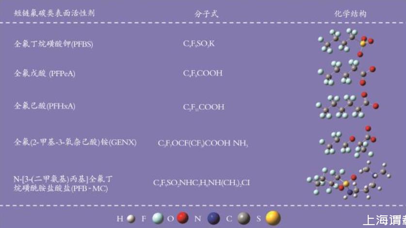 圖1 常見的短氟碳鏈表面活性劑