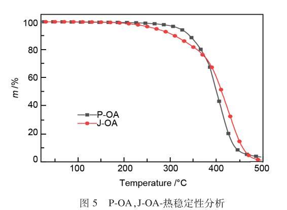 圖5 P-OA 和 J-OA 的熱穩(wěn)定性