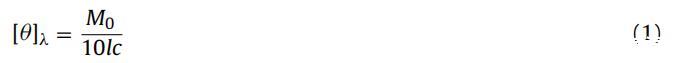 其中 θλ 是在波長處觀察到的橢圓度(以毫度為單位) λ,M0 是蛋白質(zhì)的平均殘基重量,c 是蛋白質(zhì) 以克/立方厘米為單位的濃度,l 是細胞的光程長度,以厘米為單位。 222 nm 處的橢圓度值 (θ222nm/mdeg)用于計算BSA的α-螺旋含量 使用 Morrisett 等人給出的以下等式。 [44]
