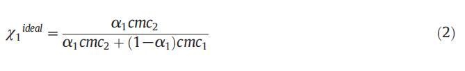 在理想狀態下,膠束摩爾分數(χ理想)已通過公式(2)[50]計算得出: