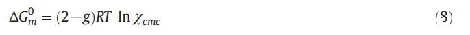 活度系數以及膠束摩爾分數也可用于使用式(7)[56]計算混合的過量自由能(ΔGex):