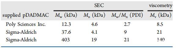 聚二烯丙基二甲基氯化銨(pDADMAC)。表2給出了研究中使用的pDADMAC樣品的分子量表征。