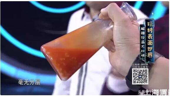 最終,在將辣椒油分別倒入三種飲料里之后發(fā)現(xiàn),只有米湯可以完美的和辣椒油相融,完全沒(méi)有分層現(xiàn)象!