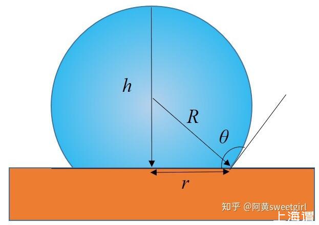 首先,此題必須分為兩種情形。第一種,是液體V很小時(shí),此時(shí)表面張力占主導(dǎo)地位。此解法宮非前輩已經(jīng)給出,但是其解析式不夠簡化。因此我進(jìn)一步加以簡化。當(dāng)表面張力占主導(dǎo)時(shí),液滴成完美的球缺狀,如圖1所示。
