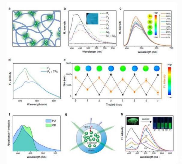 而當去除三氟乙酸后,熒光和粒徑又會恢復,并能進行多次循環。這種構象介導的變形現象和變色現象,與水母在呼吸時隨著膨脹和收縮,所表現出的熒光轉變行為十分相似。