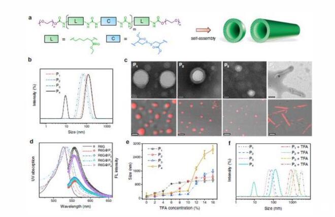 此外,通過構象介導多級自組裝,該聚合物可以形成囊泡或納米管,并表現出尺寸膨脹、收縮、變形和變色等行為。