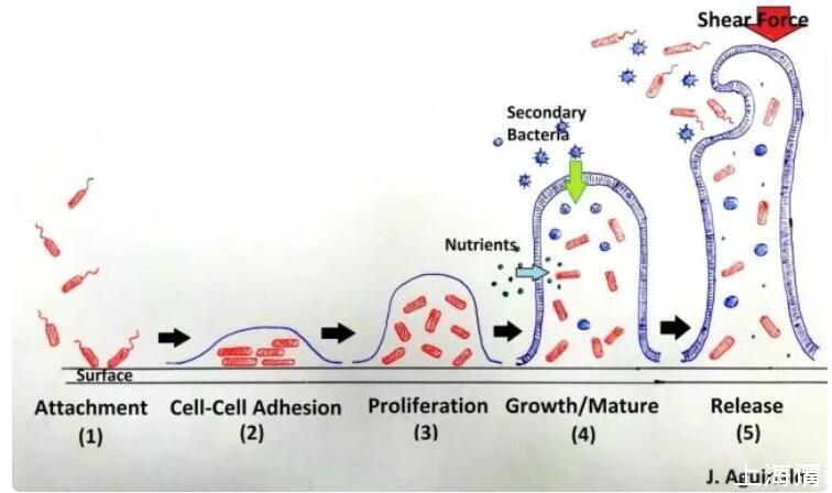 生物膜成熟,并向外釋放微生物;