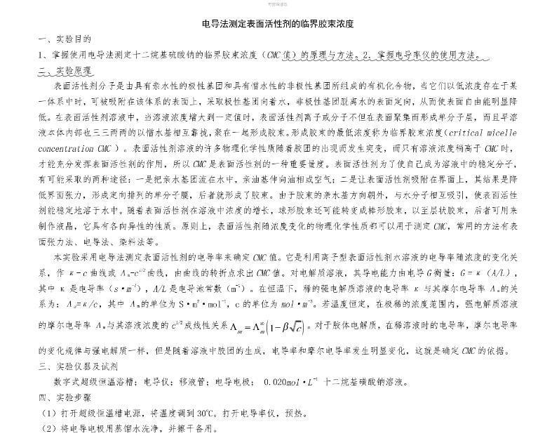 表面張力法和電導法對比測定表面活性劑臨界膠束濃度