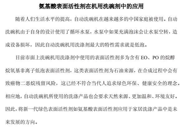 氨基酸表面活性劑在機用洗碗劑中的應用