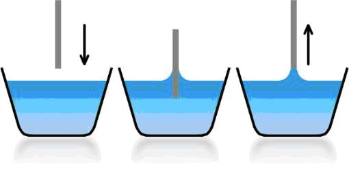 表面張力最為精確的測量技術是測量彎液面,這就是Kibron優于其他表面張力儀競爭者的原因,這也是隱藏在Kibron公司后面的無與倫比的產品性能的唯一秘密。Kibron產品采用了精確的測定技術徹底革新了表面張力的測定。經過多年的經驗,Kibron證實了這是一種毫無疑問的絕對精確的測定表面張力的方法,不像環形探針和Wilhelmy板方法,桿狀方法非常適合測量高粘性的液體:油、聚乙烯、繪畫顏料等。